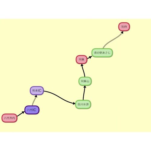 駅メモ 九州観光レンタカー② 本日は八代のホテルから阿蘇山を見学した後、豊後街道を通って指定ホテルがある別府に向かいます。 今回のコース ☆1日目 博多→福岡JCT →九州自動車道→大宰府天満宮と熊本城へ寄り道→八代IC →八代市内ホテル ★2日目 八代市内→八代…