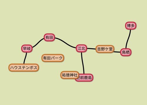 博多発 ドラクエウォーク 九州鉄道旅 青春18きっぷを使って、福岡県にできた新駅と長崎本線沿線のドラクエウォークお土産の吉野ケ里遺跡、祐徳稲荷神社、有田ポーセリンパーク、ハウステンボス(取りこぼしのため)を取得します。 博多6:35→7:35吉野ケ里公園…