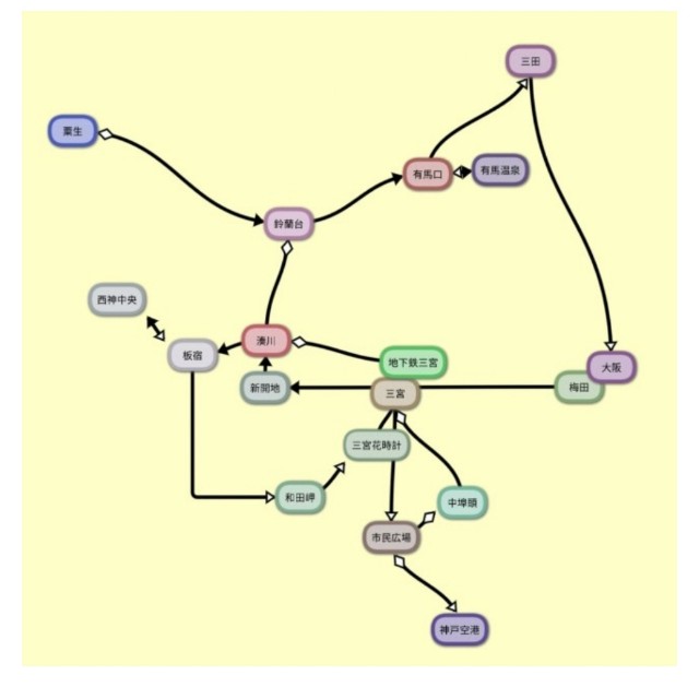 イメージは以下図の通りで、JR神戸線と神鉄の双方からレーダーを多用することにはなりますが、JR神戸線と神鉄乗車することで全ての神戸地下鉄と阪神電車、三木鉄道を取得することができます。