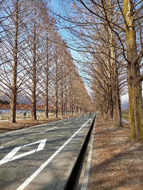 メタセコイア並木は1時間〜2時間もあれば満足できます。時間が余ればグランドゴルフで時間を潰すか、次のバス停まで並木道を歩いて抜けるか。
